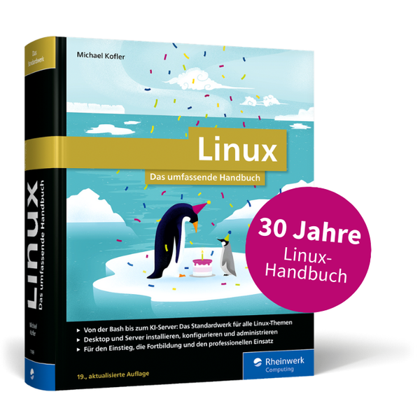 Linux-Wissen kompakt: Der „Kofler“ jetzt als E-Book! Das Standardwerk zu Linux ist nun erstmals digital erhältlich. Auf 1.429 Seiten finden Sie alles von Distributionen über Systemkonfiguration bis zu aktuellen Themen wie Container und KI. Praxisnahe Beispiele und moderne Tools machen dieses E-Book zum unverzichtbaren Begleiter für Linux-Profis und Einsteiger. Ihr digitaler Linux-Guide für nur 49,90 Euro: | | | |